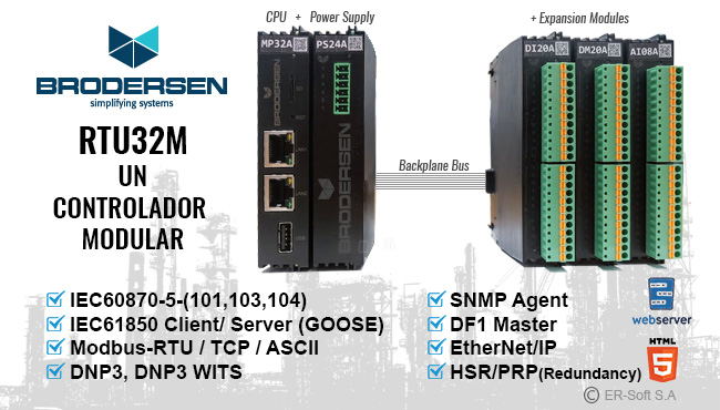 BRODERSEN RTU32M con arquitectura RTU modular, flexible y compacta.